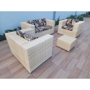 Revestimento trançado fibra sintética com tratamento Uv, resistente a sol e chuva, podendo ser lavado normalmente sem risco de danos