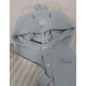 - Casaco em soft, super macio, quentinho e confortável. Maravilhoso detalhe bordado com carinha de bichinho no capuz e orelhinhas em alto relevo, detalhe nas mangas listradas que deixam a peça ainda mais encantadora. Possui punhos e barra ribanados. Abertura frontal com botões de pressão que provém maior durabilidade a peça.