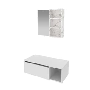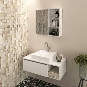 Conjunto Suspenso para Banheiro com Espelheira 80cm Branco