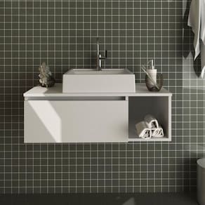 Quando falamos de banheiro pensamos em bem-estar. Pois o banheiro é onde a gente recarrega nossa energia vital, idealiza sonhos, e realiza toda a manutenção necessária para uma saúde física e mental. Com design prático, o móvel entrega ao ambiente toques de modernidade e elegância. Funcional, acondiciona produtos de higiene e beleza, porta escova, papel higiênico, toalhas, artigos de limpeza, entre tantos outros objetos pessoais. Balcão Gabinete Suspenso para Banheiro BN3601. Possui porta articulável e um nicho lateral. Estrutura em MDP e acabamento em pintura UV. Não acompanha cuba.