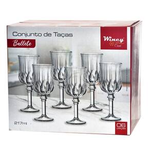 Conjunto Taça Ballet Vidro 271ML 6 PeçasO Conjunto Taça Ballet Vidro 271ML, composto por 6 peças, é a escolha perfeita para quem busca sofisticação e elegância à mesa. Com um design delicado e refinado, essas taças possuem um formato gracioso, inspirado no movimento fluido e artístico do balé, tornando-as ideais para servir vinhos, espumantes, coquetéis ou outras bebidas especiais.Fabricadas em vidro de alta qualidade, as taças oferecem resistência e clareza, realçando a cor e a transparência das bebidas. Sua capacidade de 271ML é perfeita para degustar e apreciar a bebida com conforto, tornando cada momento ainda mais especial.Com acabamento impecável, o Conjunto Taça Ballet traz um toque de charme e requinte para jantares, comemorações ou ocasiões especiais, além de ser um item essencial para quem deseja um serviço de mesa elegante e funcional. Ideal para presentear ou complementar sua coleção de utensílios de mesa.
