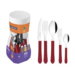ESPECIFICAÇÕES TÉCNICAS Marca: Tramontina Linha: Leme Referência: 23198718 Código de barras: 7891112290990 Cor: Vermelho Composição: Aço Inox e Polipropileno Pode ser levado(a) ao micro-ondas: Não Pode ser lavado(a) na máquina de lava-louças: Sim Quantidade: 20 peças Dimensões do produto: 24cm x 9cm x 9cm (AxLxC) Peso do Produto: 455g Dimensões Embalado: 28cm x 13cm x 13cm (AxLxC) Peso Embalado: 510g