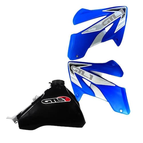 Anuncio referente a tanque + aletas. Modifique o visual da sua DT 180 com praticidade e segurança. Estética do tanque baseada na moto DT 180 e aletas no estilo trilha incrementam o visual das DT's 180. Este conjunto Tanque + Aletas , trás á sua DT 180 um visual atualizado, aerodinâmico, resistente e seguro. Tanque: Preto Par de Aletas: Azul Peso líquido do tanque: 2,5kg vazio . Capacidade do tanque: 11 litros. Produzidos em termoplástico de alta resistência com pigmentos à prova de raios UV ultravioleta . Obs: Cores e modelos dos adesivos podem variar conforme disponibilidade. Os adesivos que acompanham os produtos compõe a embalagem dos mesmos e tem pouca durabilidade.