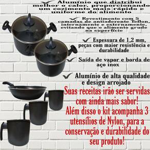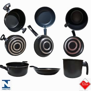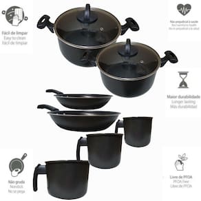 01 Caneco Antiaderente N14: Diâmetro de 14 cm 01 Caneco Antiaderente N16: Diâmetro de 16 cm 01 Caneco Antiaderente N12: Diâmetro de 12 cm 01 Panela Caçarola N22 Antiaderente: Diâmetro de 22 cm 01 Panela Caçarola N24 Antiaderente: Diâmetro de 24 cm
