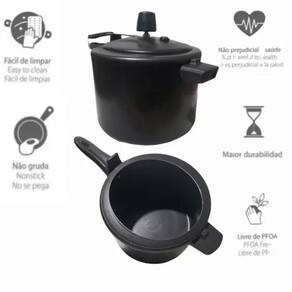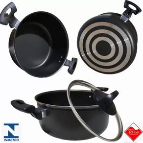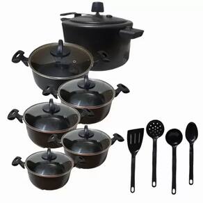 Bem vindo a loja Mandacaru & Varejo , aqui você encontra de tudo para sua cozinha todos os produtos a pronta entrega com garantia total.Características principaisMarca Mandacaru & VarejoLinha AntiaderenteModelo MasterQuantidade de peças 10Outras característicasMateriais: Alumínio, Antiadeirente e VidroPeças incluídas: 10Descrição CONJUNTO TEFLON ANTIADERENTE DE 10 PEÇAS DA LINHA COLORConjunto fabricado em alumínio, teflon antiaderente e vidro que dissipa melhor o calor.Revestimento colorido através do processo de teflon antiaderente em 5 camadas resistente a queima indireta.O conjunto teflon antiaderente contém:01 Panela Caçarola N24: Diâmetro de 24 cm01 Panela Caçarola N22: Diâmetro de 22 cm01 Panela Caçarola N20: Diâmetro de 20 cm01 Panela Caçarola N18: Diâmetro de 18 cm01 Panela Caçarola N17: Diâmetro de 17 cm 01 Panela Preção com Teflon 4,5 Litros04 Espatula de NylonOpções de Cores: Preto