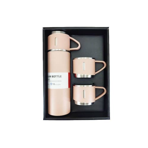 A garrafa térmica com 2 xícaras adicionais e capacidade de 500 ML é a companhia perfeita para os amantes de café e chá que estão em trânsito. Com seu design elegante e funcional, esta garrafa térmica foi projetada para manter suas bebidas quentes ou frias por longos períodos de tempo, garantindo que você tenha sua bebida favorita sempre à mão quando precisar. Com uma capacidade de 500 ML, esta garrafa térmica é grande o suficiente para atender às suas necessidades diárias de consumo, mas compacta o suficiente para levá-la a qualquer lugar. Além disso, ele vem com 2 xícaras extras, o que significa que você pode compartilhar sua bebida favorita com um amigo ou ente querido a qualquer momento. A garrafa térmica é construída com materiais de alta qualidade, garantindo sua durabilidade e resistência ao choque. Além disso, sua tampa hermética garante que não haja derramamentos, mantendo suas bebidas seguras e evitando qualquer desordem. O design da garrafa térmica também é fácil de limpar, o que significa que você pode mantê-la sempre limpa e pronta para uso. O formato compacto facilita o armazenamento em qualquer lugar da cozinha, escritório ou até mesmo na mochila.\ N-Material: aço inoxidável\ N Desempenho de isolamento: 6 a 12 horas\ N Capacidade: cerca de 500 ML\ N Tamanho: Conforme mostrado\ N-embalagem: caixa de presente
