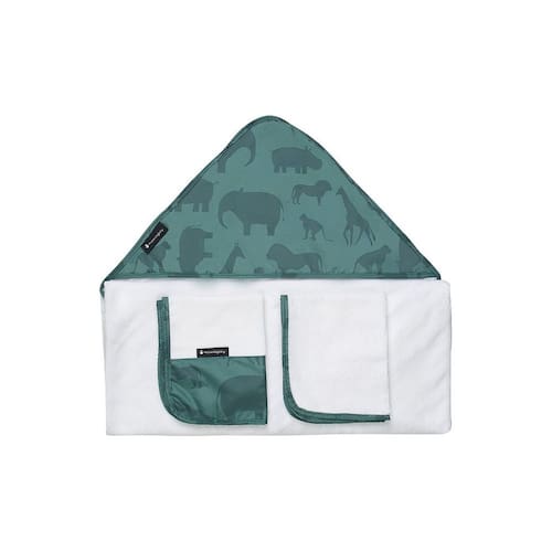 A linha de Enxoval Masterbag foi criada pensando especialmente nas mamães e papais que amam tudo combinando, e não abrem mão dos cuidados necessários com seu bebê. Sabemos que a pele dos pequenos são sensíveis e delicadas, e merecem atenção. O Conjunto com toalha de banho atoalhada com capuz e forro de fralda, uma toalhinha de rosto com estampa safari e uma toalhinha para secar o bumbum do bebê são macios e 100% em algodão para não irritar a pele do bebê. Sua embalagem é um saquinho com fechamento em zíper para organizar as toalhas na mala, ou guardar as toalhas e roupinhas usadas.