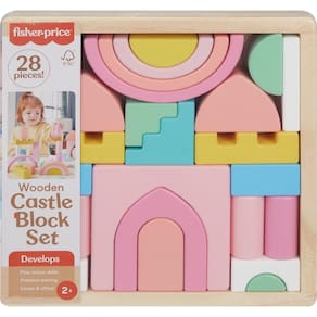 Fisher-Price Conjunto de blocos de castelo de brinquedo infantil de madeira, 28 peças de madeira para empilhamento e desenvolvimento, pré-escolar, crianças a partir de 2 anos