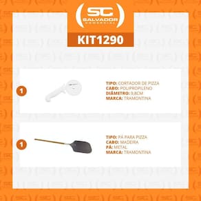 Muito importante: -- conferir produtos no ato do recebimento. Não aceitar produtos com embalagem violada amassado, rasgado, aberto, quebrado, etc , a recusa deve ser feita no ato. Componentes do kit: - 1 pá para pizza em metal com acabamento natural e cabo longo - tramontina 13309043 - 1 cortador de pizza master aço inox branco - tramontina 24686180 Pá para pizza em metal com acabamento natural e cabo longo - tramontina 13309043: : 90 dias para vícios ou defeito de fabricação - pá metálica. - cabo longo produzido em madeira goiabão. - acabamento natural. Obtenha mais praticidade e facilidade na hora de levar e retirar suas pizzas do forno. Com a pá para pizza tramontina em metal com acabamento natural e cabo longo você tem mais segurança e comodidade, pois devido ao seu cabo longo, seu manuseio se dá de maneira mais fácil e eficaz. Dimensões do produto: 132 cm a x 30,5 cm l x 2,7 cm p Peso líquido: 0,95 kg Cortador de pizza master aço inox branco - tramontina 24686180: : 90 dias para vícios ou defeito de fabricação - lâmina de aço inox din 1.4110. - cabo de polipropileno. Qualidade e durabilidade para profissionais que trabalham muito. Com tecnologia de ponta, as facas profissionais estão sempre preparadas para entrar em ação e fazer bonito com qualquer ingrediente. Eficiência é o que não falta. A altíssima qualidade das lâminas, resultado do tratamento térmico composto por têmpera aquecimento da lâmina , subzero resfriamento de 50 a 196 graus negativos e revestimento aumento da elasticidade do aço garante vida longa e eficiente. A anatomia e ergonomia do cabo de polipropileno texturizado, injetado diretamente sobre a espiga da lâmina, oferecem segurança e conforto durante o manuseio. A proteção antimicrobiana inibe e reduz o crescimento de bactérias e fungos. Essa tecnologia é incorporada durante o processo de fabricação do cabo e dura por toda vida útil do produto, mas não não elimina a necessidade de lavá-los. Dimensões do produto: 2,6 cm a x 9,8 cm l x 30,5 cm p Peso líquido: 0,19 kg Dimensões da embalagem: 5 cm a x 1,33 cm l x 0,32 cm p Peso bruto: 1,4 kg