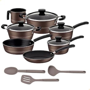 - Suas peças são produzidas em alumínio com revestimento interno e externo de antiaderente Starflon Excellent, características que proporcionam o cozimento uniforme dos alimentos, evita que eles grudem em sua superfície e as torna mais duráveis.