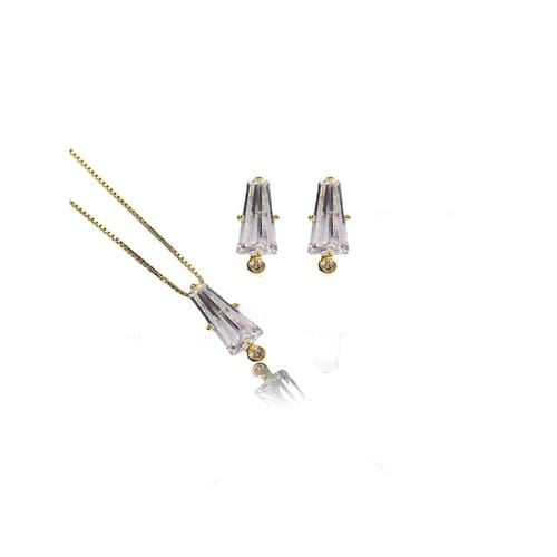 Olha esse modelo de Conjunto em trapézio com zircônias, como ele é lindo e charmoso. É um acessório ideal para seus compromissos diários deixando você ainda mais linda e deslumbrante. Um acessório folheado em ouro que vai deixar você preparada para qualquer ocasião. O brilho a zircônia torna sua presença inesquecível.