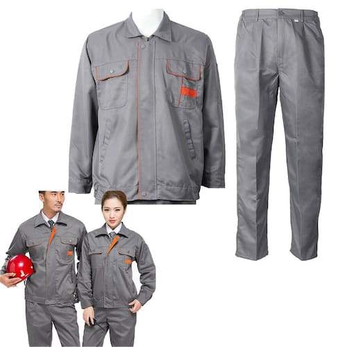 Jaqueta de trabalho de manga comprida, gola, fecho com zíper e botão de pressão, fácil de colocar e tirar.