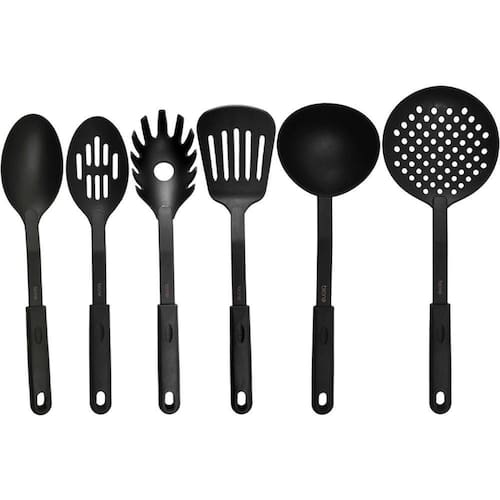 1 ;Concha de Nylon Black 30,5cm;1 ;Colher de Nylon Vazada Black 31,5cm;1 ;Colher de Nylon Black 31cm;1 ;Espátula de Nylon Vazada Black 31,5cm;1 ;Colher De Nylon Para Espaguete 30cm;1 ;Escumadeira de Nylon Black 32cm;