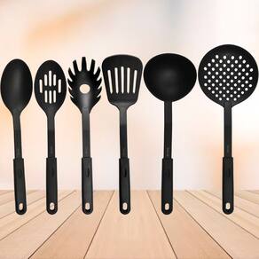 Conjunto Utensílios Cozinha Nylon Black Luxo Elegante 6Peças -