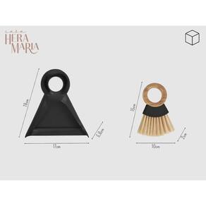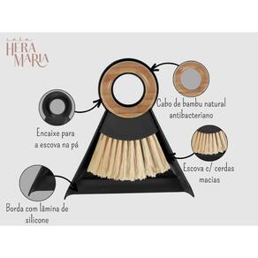 Características / medidas Dimensões: Pá: 17 x 5,8 x 19cm l x p x a Escova: 10 x 2 x 15cm l x p x a Cor: bambu e preto. Material: bambu e plástico.