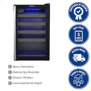- Este conjunto exclusivo Venax traz a Cervejeira Expositora 102L com porta invertida, controle digital (-6C a 6C) e LED azul, perfeita para manter cervejas sempre geladas e à vista.