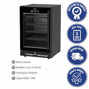 ADEGA VENAX CAVE IN TOUCH 100L PRETO FOSCO DE EMBUTIR PORTA INVERTIDA 127V P31424
