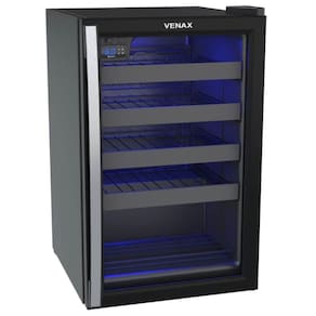 CARACTERÍSTICAS DA EXPOSITORA CHAMPANHEIRA 100L PORTA INVERTIDA PRETO FOSCO - Controlador de Temperatura: Digital. Regulável(-2C a 8C); - Iluminação Interna: LED Azul; - Porta: Vidro Duplo; - Aquecimento da Porta: Sim; - Puxador da Porta: Alumínio - Abertura da Porta: Da Esquerda para Direita; - Para Esquerda(Opcional); - Trava de Abastecimento: Não; - Degelo: Automático; - Dreno: Traseiro; - Recipiente de Degelo: Sim; - Prateleiras: 4 Deslizantes e 1 Fixa; - Evaporador: Sem Ar Forçado; - Sistema de Refrigeração: Compressor; - Gás Refrigerante: R134a; - Pés: Frontais Reguláveis e Traseiros com Rolete; - Gabinete Interno: PSAI; - Gabinete Externo: Aço Revestido com Pintura Eletrostática; - Testeira: Não; - Capacidade de Armazenamento: 24 Garrafas / Máx.90mm.