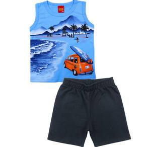 Conjunto de Verão Kyly Infantil Menino - Regata e Bermuda - Tamanhos Disponíveis: 1 ao 8