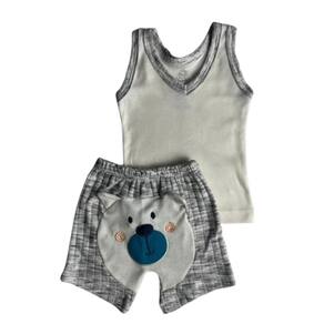 Design:A regata é moderna e prática, facilitando a troca de roupas. O short combina perfeitamente, garantindo um visual harmonioso e divertido.