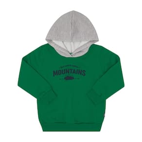 Ocasiões especiais ou passeios divertidos merecem um look confortável, quentinho e estiloso para os pequenos aventureiros. Confeccionado em moletom, o conjunto consta com blusão de manga lnoga na cor verde que contém capuz na cor marinho e estampa frontal de montanhas com escrita "Só quero explorar montanhas". A calça na cor mescla cinza possuí elastano na cintura e na canela, deixando o look confortável e seguro para o seu pequeno.\n