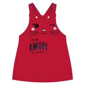 Novo conjuntinho Pulla Bulla super estiloso e quentinho. Salopete na cor Vermelho confeccionado em Moletinho com estampa de gatinho e detalhe em bordado de paetê e uma Blusa na cor Branco confeccionada em Meia malha proporcionando ainda mais conforto. Sua garotinha vai ficar um amor, bela e fofinha com esse look.\n