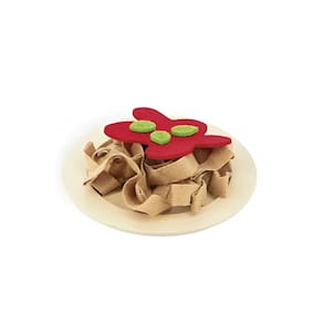 Conteúdo da embalagem: 20 massas tipo farfalle em feltro 4 raviólis grandes 10 tagliatelle de fita plana 6 folhas de manjericão 5 cogumelos 1 molho de tomate em feltro Queijo parmesão e ralador Tomates decorativos Prato, colher, escorredor e panela de metal Embalagens de papelão para guardar as massas Marca: Não Informado