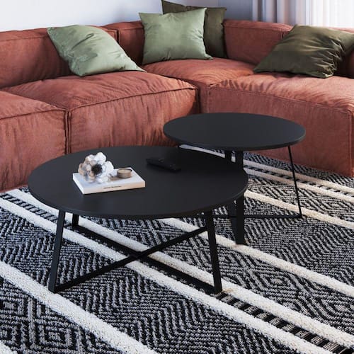 Mesa confeccionada em MDP 15mm com acabamento BP e estrutura metálica de aço maciço com acabamento em pintura epóxi fosco, materiais que trazem resistência e durabilidade ao produto. A mesa assume um papel importante na decoração, além de ser um móvel de apoio, é funcional e aberta a muitas possibilidades na hora de decorar. Inspirada no Estilo Industrial proporciona um ambiente com um toque totalmente diferenciado e moderno. Medidas(AxLxP): 30x80x80cm 38x60x60cm Acabamento da Base: Pintura Acabamento do Tampo: BP Ambiente Principal: Sala de Estar Complexidade da Montagem: Baixa: pode ser montado por uma pessoa sozinha Cor: Preto Cor do Produto: Preto Dobrável: Não Escala de Brilho: Fosco Espessura do Tampo: 15 Extensível: Não Formato da Mesa: Redondo Informações Complementares: O peso suportado considera a carga distribuída igualmente pela peça (10kg cada mesa). As imagens são ilustrativas e as cores podem sofrer variações de tonalidade, conforme o ajuste de configuração do monitor, os objetos decorativos não estão inclusos. Itens Inclusos: 02 Mesas, kit ferragens, manual de montagem. Linha ou Coleção: Complementos Manual de Montagem e Instalação: https://cdn2.madeiramadeira.com.br/atributo/artesano-moveis/1237083-27939-940-941-947-948-manual-portugues-ingles-e-espanhol.pdf Material da Base: Aço Material do Tampo: MDP Material Principal: MDP Medida da Base (A x L x P): 36,5x80x80cm Necessita Montagem: Sim Origem do Produto: Nacional Peso: 15.6 Possui Base: Sim Possui Espelho: Não Possui Possui Gavetas: Não Possui Portas: Não Possui Prateleiras: Não Possui Rodízio: Não Recomendações de Uso, Manutenção e Limpeza: Limpar utilizando apenas pano umedecido com água, nunca utilizar produtos químicos ou abrasivos, pois estes danificam o revestimento do móvel. Sistema de Montagem: Fixação é feita por parafusos, possibilitando a desmontagem do produto sem danificá-lo. Suporta Até (kg): 10