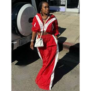 - Conjunto feminino de 2 peças: este agasalho com uma silhueta larga e calça de cintura alta cria um visual esportivo elegante que é perfeito para várias ocasiões. Eleve seu jogo esportivo com esta peça moderna projetada para mulheres que amam combinar estilo, conforto e versatilidade.