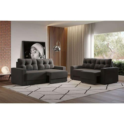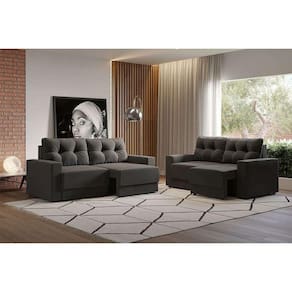 Que tal o Conjunto Lubeck?É na sala de estar onde a maior parte dos momentos de lazer da família acontece, seja curtindo um filminho, jogando aquele lançamento dos games ou recebendo os amigos para um café, por isso é essencial ter um sofá com qualidade e beleza para acomodar a todos muito bem. Espaçosos, bem estruturados e com um design para deixar o lar-style perfeito, o Conjunto Lubeck tem assento retrátil, o que faz deles um kit ótimo para oferecer aquele aconchego extra. Revestidos com o elegante e macio tecido suede, os móveis de 2 e 3 lugares têm ainda uma cor sóbria que pode ser facilmente harmonizada com vários estilos de decoração, sendo ideal para te inspirar e dar aquela mãozinha na hora de criar o ambiente dos sonhos. Agora é só combiná-los com aquele rack e TV incríveis e pronto! Seu centro de entretenimento está completo.