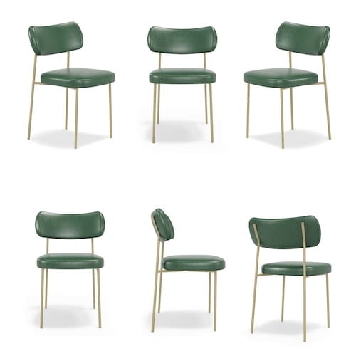 Conjuto 6 Cadeiras Escritório Stela Champanhe Couro Sintetíco Verde - Vallisa Decor
