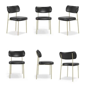 Conjuto 6 Cadeiras Fixa Stela Champanhe Escritório Courino Preto - Vallisa Decor