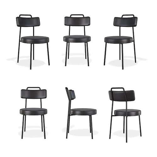 Conjuto 6 Cadeiras Fixa Ster Escritório Courino Preto - Vallisa Decor