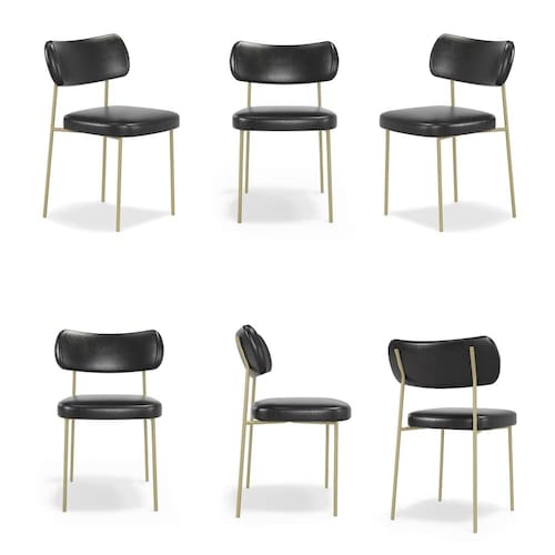 Conjuto 6 Cadeiras Stela Champanhe Escritório Couro Sintetíco Preto - Vallisa Decor
