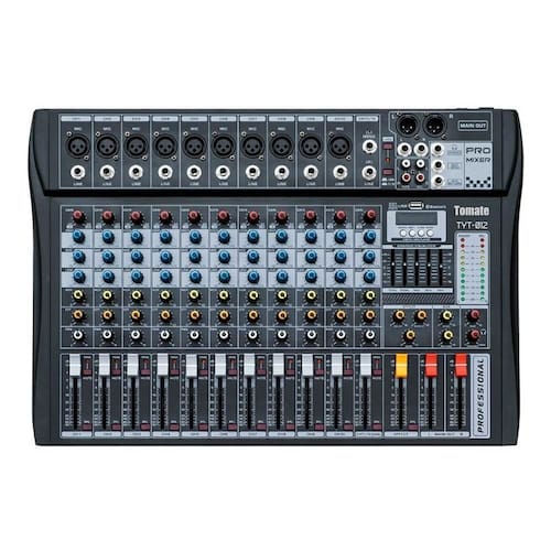 com o console de mixagem tomate tyt-012 de mistura 100v/240v, você terá em suas mãos um equipamento poderoso para criar e aprimorar os sons mais incríveis. Esse console de mixagem possui 12 canais e é perfeito para músicos, djs e produtores que desejam elevar a qualidade do seu trabalho. Uma das principais características desse console de mixagem é a sua alimentação fantasma, que fornece corrente contínua para dispositivos como microfones e outros equipamentos que necessitam dela. Isso torna a instalação mais prática e confortável, pois não são necessárias várias fontes de alimentação separadas. Além disso, o console de mixagem tomate tyt-012 possui uma ampla variedade de conectores, incluindo 10 entradas de microfone xlr, 10 entradas de linha jack 6. 3 mm, 1 entrada de linha jack l-mono/r 6. 3 mm, 1 saída principal xlr l/r, 1 saída principal jack l/r 6. 3 mm, 1 saída auxiliar jack 6. 3 mm, 1 entrada auxiliar jack 6. 3 mm, 1 saída para fone de ouvido jack 6. 3 mm, 1 entrada para tape rca l/r, 1 entrada para rec rca l/r e 1 porta usb-a. O console de mixagem tomate tyt-012 também possui conectividade bluetooth, o que facilita a reprodução de músicas diretamente do seu dispositivo móvel ou computador. Além disso, a carcaça do console é feita de metal, garantindo durabilidade e resistência para. Esse console de mixagem também acompanha 1 adaptador de energia ac e 1 manual de instruções, garantindo que você tenha tudo o que precisa para começar a utilizar o equipamento. Com equalizador, o console de mixagem tomate tyt-012 permite que você ajuste os diferentes níveis de frequência para obter o som desejado. Dessa forma, você terá total controle sobre o seu mix e poderá alcançar resultados profissionais. O console de mixagem tomate tyt-012 de mistura 100v/240v é ideal para músicos, djs e produtores que desejam elevar a qualidade do seu trabalho. Marca: Alinee