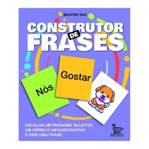 Este livro-caixinha® contém 100 cartas, divididas em 3 grupos: um com 22 pronomes (sujeitos), um com 36 verbos e outro com 42 substantivos representados por imagens. Escolha uma carta de cada um deles e forme uma frase, obedecendo à lógica de identificar o substantivo e conjugar o verbo de acordo com o sujeito, tudo na ordem correta e de forma coerente, adicionando outros elementos, se necessário. Esta é uma obra cujas cartas permitem diversas combinações. Ela estimula a alfabetização de crianças, mas também é indicada para pessoas de todas as idades.