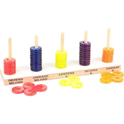 Contador Plastico Abaco Aberto 50 ArgolasO ábaco é um instrumento utilizado para realizar cálculos, proporcionando uma aprendizagem prática. Possibilita desde o reconhecimento de quantidades desde cálculos com as quatro operações. Descritivo detalhado: Confeccionado em M.D.F. Plástico translúcido e madeira, base com serigrafia atóxica.Medindo 30 x 7 x 12 cm, 05 varetas fixas na base e 50 argolinhas de P.V.C. Rígido translúcido coloridas. Embalagem: Película de P.V.C. Encolhível.Medidas aproximadas do produto- Comprimento: 30 cm- Altura: 9 cm- Largura: 11 cm- Peso: 380 g