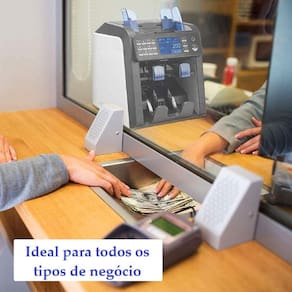 Capacidade do hopper 600pcsCapacidade do stacker 200pcsMoedas real, dolar, euro + 5 moedas estrangeirasFunções: soma, lotes, mix, add, tela touch screenTamanho das cédulas: 100mm175mm - 50mm90mmEspessura das cédulas: 0.05mm0.12mmVelocidade pcs / min : 800,1000,1200 mix mode / 800,1000 serial number reading mode Ram: 1gLotes: 5-199pcsConectividade: usb for data collection and software upgradeRs232 for pc communicationRj 12 for external displayWlan for data collection and software upgrade in batchDetecção de cédulas falsas:Ultraviolet detection uv Magnetism detection mg Metal thread detection mt Infrared image detection ir Double sides image detection / 2 cisPower supply: bivolt ac 220v 50hz 10% ac 110v 60hz 10%Dimensão: 287 h x 240 w x 232 d mmPeso: 5.9 kgGarantia: 12 meses para defeitos de fabricaçãoAssistência técnica em todo o brasil