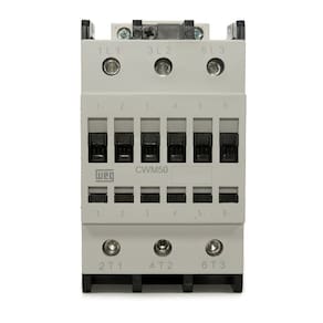 Com uma corrente nominal de 50A e 3 contatos principais NA, o Contator Tripolar CWM50-00-30V26 50A 220VAC Weg é adequado para uso em circuitos de até 440V. Sua tensão de comando varia de acordo com a frequência, podendo ser de 190V a 50Hz ou 220V a 60Hz.