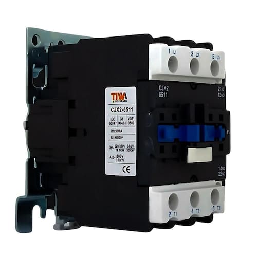 Contator tripolar 65a 220v lc1d-6511 cjx2 com 1na auxiliar - padrão telemecanique - marca tiwa o contator lc1d-6511, da linha cjx2 da marca tiwa, é uma solução confiável, segura e eficiente para o comando e acionamento de motores trifásicos e cargas elétricas em instalações industriais e comerciais. Projetado conforme o padrão telemecanique, reconhecido mundialmente pela robustez e durabilidade, este modelo é indicado para aplicações que demandam alta frequência de manobras e operação contínua em ambientes exigentes. Esse equipamento suporta até 65 amperes na categoria ac-3 uso com motores de indução trifásicos e possui bobina de acionamento em 220v, operando com alta eficiência em sistemas de 50/60hz. Com três polos principais e um contato auxiliar normalmente aberto na integrado, oferece flexibilidade para o desenvolvimento de sistemas de automação, partida direta ou reversora de motores, intertravamentos, sinalizações e circuitos de comando. O modelo permite montagem tanto em trilho din quanto em base com parafusos, o que proporciona versatilidade na instalação em painéis elétricos. É compatível com relés térmicos e temporizadores auxiliares, atendendo aos padrões de integração industrial. A estrutura do contator é desenvolvida em material termoplástico de alta resistência, com componentes internos de liga metálica tratada, assegurando excelente condutividade elétrica e longa vida útil, mesmo sob condições adversas de temperatura, vibração e variações de carga. Aplicações típicas Comando de motores trifásicos partida direta e reversora sistemas de automação industrial controle de cargas resistivas e indutivas painéis de comando e distribuição linhas de produção, hvac, bombas, ventiladores industriais instalações comerciais e prediais com alto consumo Ficha técnica detalhada modelo: lc1d-6511 cjx2 Fabricante: tiwa compatível com padrão telemecanique Corrente nominal ac-3 : 65a Corrente térmica ith : 95a Tensão de operação da bobina: 220v ac 50/60hz Número de polos principais: 3p trifásico Contato auxiliar integrado: 1na normalmente aberto Capacidade de comutação: - motores trifásicos até 30kw em 380v - capacidade de manobra em cargas resistivas e indutivas Vida elétrica: = 1,6 milhões de operações ac-3 Vida mecânica: = 10 milhões de operações Temperatura de operação: -5c a +55c Montagem: trilho din ou base parafusada Dimensões aproximadas: - altura: 135 mm - largura: 90 mm - profundidade: 130 mm Peso aproximado: 1,6 kg Grau de proteção: ip20 gabinete aberto Normas aplicáveis: iec 60947-4-1 vantagens e benefícios Marca: White Label