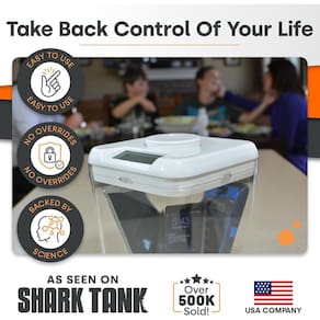Cozinha segura: unidades completas - Destaque no tanque do tubarão. Desenvolva bons hábitos bloqueando as tentações no Kitchen Safe. USA Today e revista TIME consideraram "Brilhante!" - Estudos de pessoas altamente bem-sucedidas mostram que a melhor estratégia para atingir objetivos é evitar depender da força de vontade em todas as situações. Essas pessoas são mais propensas a usar algo chamado pré-compromisso, o que melhora significativamente as chances de atingir os objetivos. - São necessários apenas segundos para aprender a usar a interface. O Kitchen Safe pode ser bloqueado por qualquer tempo entre 1 minuto e 10 dias. As baterias duram de 6 a 12 meses. - Acesse nosso site TheKitchenSafe com para mais informações sobre especificações, perguntas frequentes e outras