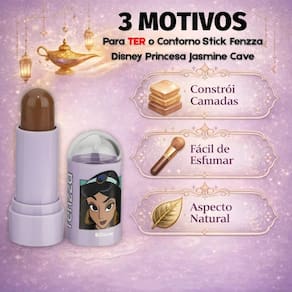 Aplique o Contorno Stick Fenzza Disney Princesa Jasmine Dis109 diretamente nas áreas que deseja contornar, como abaixo das maçãs do rosto, nas laterais do nariz e na linha do maxilar.