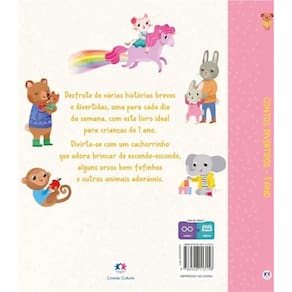 Desfrute de várias histórias breves e divertidas, uma para cada dia da semana, com este livro ideal para crianças de 1 ano. Divirta-se com um cachorrinho que adora brincar de esconde-esconde, alguns ursos bem fofinhos e outros animais adoráveis.