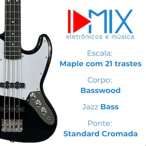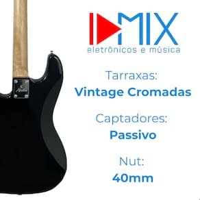 Contra Baixo Elétrico Jazz Bass 4 Cordas Passivo Preto