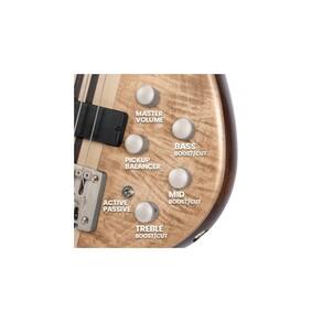Modelo: A5 FMMH Série: Artisan Encordoamento: 5 Cordas Contrução: Neck-Thru Cutaway: Double Cutaway Corpo: Mahogany Palaquium Tampo: Figured Maple Top Neck: 5PC Maple + Panga Panga Escala: Panga Panga Trastes: 24 Dimensões da Escala: 864mm 34 Marcação na Escala: Abalone Tarraxas: Hipshot Ultralite Machine Heads Ponte: Hipshot Trans Tone Bridge Captação: Bartolini MK-1 Pickups Eletrônicos: Bartolini MK-1 EQ Controles: Pick Balancer, Master Volume, Graves, Médios , Agudos Chave: Ativo/Passivo Ferragens: Platinum Hardware Acabamento: Fosco Cor: Open Pore Natural OPN Ean: 8809625362393