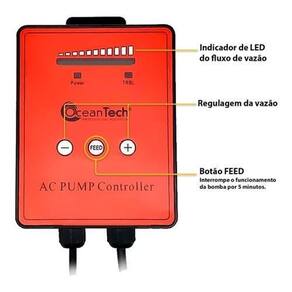 Com uma potência de 100W e tensão de 220V, esse controlador é indicado para uso em aquários de água doce e salgada, sendo perfeito para a criação de peixes. Sua dimensão aproximada é de 11x14x4cm e o cabo da bomba até o controlador possui 1,4 metros de comprimento.