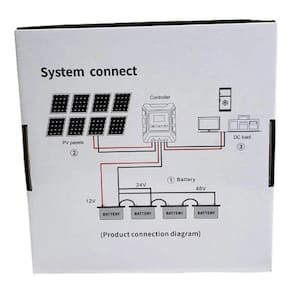 - Tensão do sistema: 12V, 24V, 48V (reconhecimento automático)