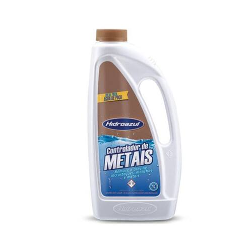 Produto: controlador de metais hidroazul 01 lt: indicado no tratamento de água que contém metais. Combate especialmente as manchas causadas por ferro, cobre, cálcio e manganês. Aumenta a vida útil dos equipamentos e instalações, evitando o entupimento de tubos e serpentinas.