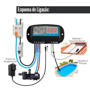 Controlador de Temperatura para Aquecimento Solar de Piscina, Energia Solar Fotovoltaica e Boiler - Bivolt CDT Luxpool