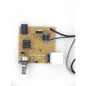 Controlador PWM de velocidade para motores dc 12V e 20A. Circuito controlador de velocidade de motores 12V e corrente de até 20A. Projetado para melhor ganho possível, baixa dissipação de calor, aumentando a vida útil da bateria. opcional uso de baterias 12V ou fontes 110/220V - 12V Dc Controle de velocidade de 0 a 100% da rotação do motor através de PWM não há perda de torque . Utilização de um potenciômetro para regulagem Funciona perfeitamente em motores de vidro elétrico automotivo, motores bosh 12V, motores Pittman, mabuchi e diversos outros motores utilizados em projetos que necessitam de alto torque. Suporta picos de corrente de até 30A. basta ligar a fonte/bateria no controlador e os fios no motor para iniciar o uso . OBS: Para correntes acima de 10A trocar o dissipador por um maior e para correntes acima de 14A, colocar um cooler para auxiliar a dissipação de calor. Caracteristicas Tensão de funcionamento = 12V dc Limite de corrente = 20A Dimensões = 5 cm X 5 cm X 3 cm